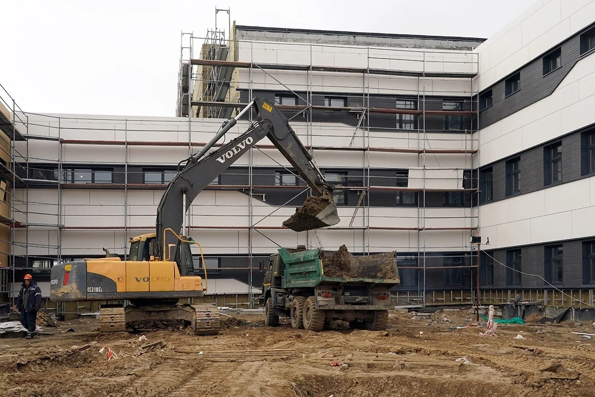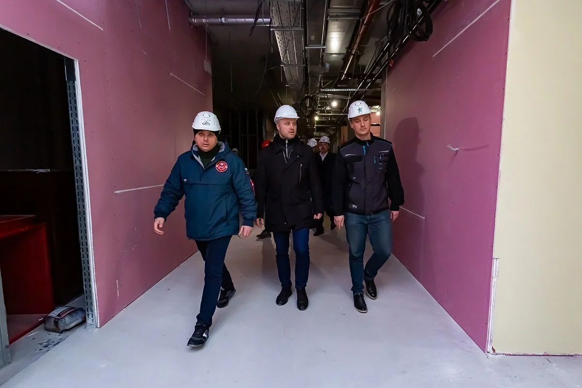 На строительной площадке трудятся в среднем по 400 человек ежедневно. На объекте активно ведется отделка внутренних помещений, монтаж фасада, слаботочных систем, водоснабжения и водоотведения. С декабря прошлого года здание отапливается, что дало возможность ускорить темп работ.