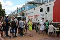 В общей сложности мобильный пункт сдачи крови в субботу посетили 112 человек, 81 был допущен к донации. В итоге банк крови СПККО пополнился на 38,7 литра цельной донорской крови.